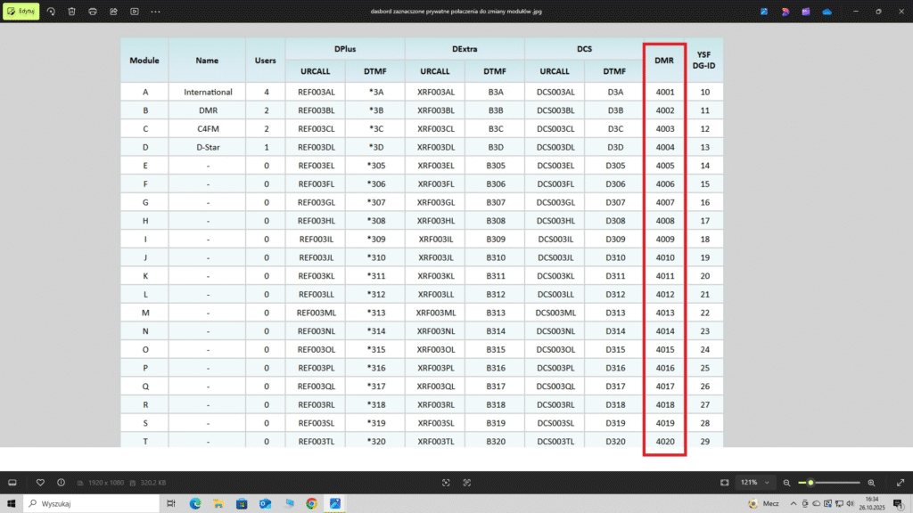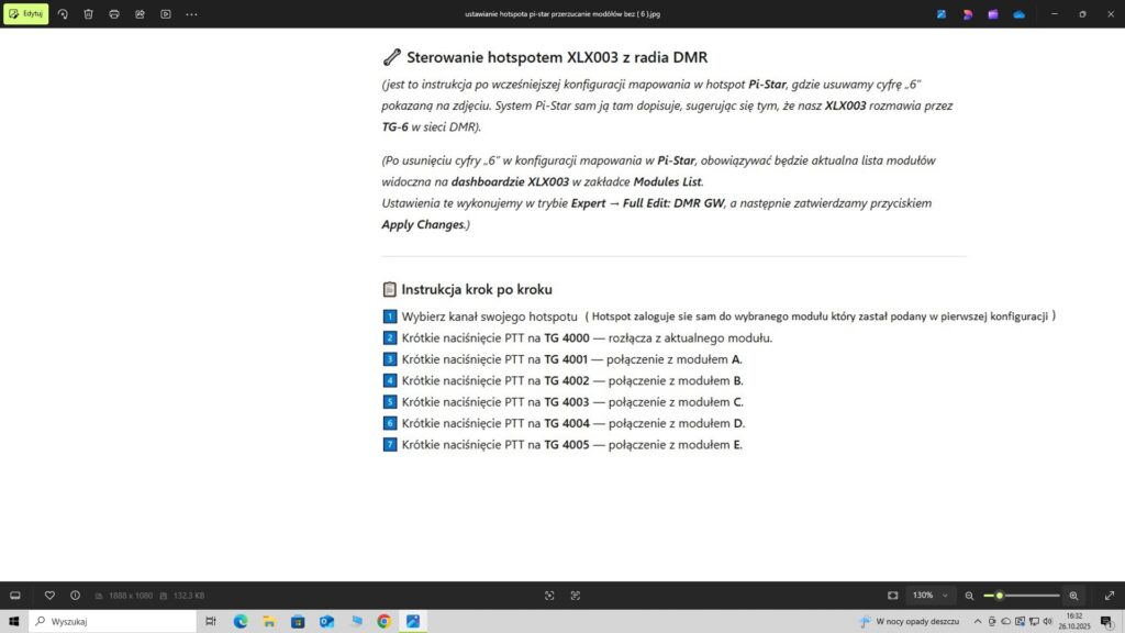 Chcę tak do formalności napisać żę polecenia w kierunku hotspota są to cyfry traktowane jako prywatne połączenie ,można do kontaktów w radio zrobić nazwę XLX003 np. moduł B i wpisać 4002 lub 64002 i potraktować to jako ID odbiorcy prywatnego i po naciśnięciu PTT na 2 s dany numer wydaje polecenie do pi-star aby przeskoczył na inne moduły . Działa to w obu konfiguracja bardzo dobrze ,ułatwia to operatorowi pracę i oszczędza czas ,przetestujcie panowie i dajcie znać .