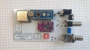 Down Converter umożliwiający odbiór satelity QO-100 na dowolnym TRXie z pasmem od 144MHz. Konwerter zasilany jednym kablem koncentrycznym. Beacon satelity odbierany jest na 144.500MHz, 430.500MHz. Możliwe jest zaprogramowanie dowolnej częstotliwości początkowej. Stabilność częstotliwości urządzenia to 0.5ppb. Film pokazujący odbiór można zobaczyć poniżej.